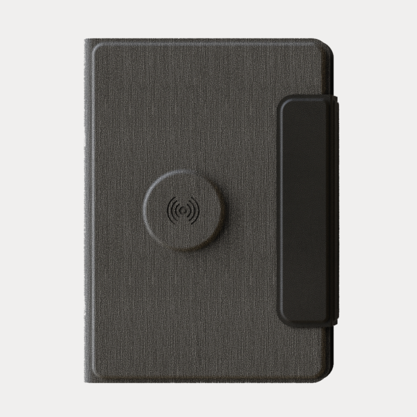 POWER NOTE – 5W Wireless Charging Notebook with 5000mAh Powerbank, Foldable Stand & Lycra Pockets