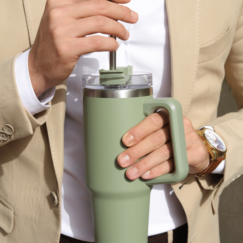 EXPLORER Powder Coating – Versatile 900ml Recycled Stainless Steel Mug with Straw