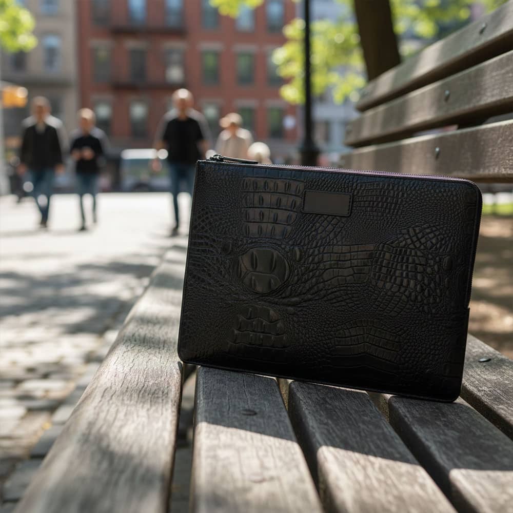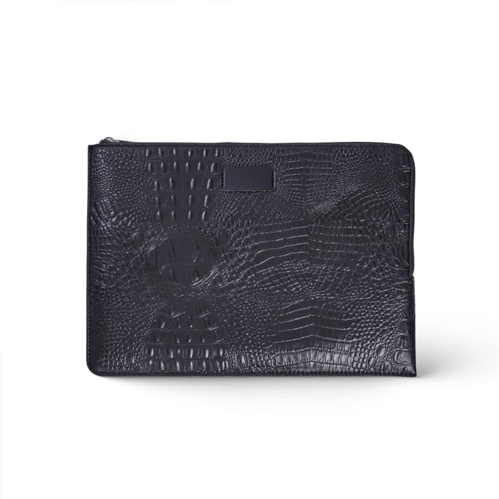Crafted from crocodile-textured leatherette, this slim carrier combines sophistication with resilience. A smooth zipper ensures secure closure while protecting your device from everyday wear. With its compact form (37.8 x 27.5 x 2 cm), it accommodates most 15-inch laptops—perfect for professionals on the move.